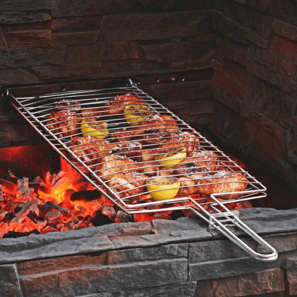 Grelha Dupla Abaulada 81,5X26,5 Super Grill 03 Assar Peixe Linguiça Frango Mor Aço Reforçado Resistente Churrasqueira