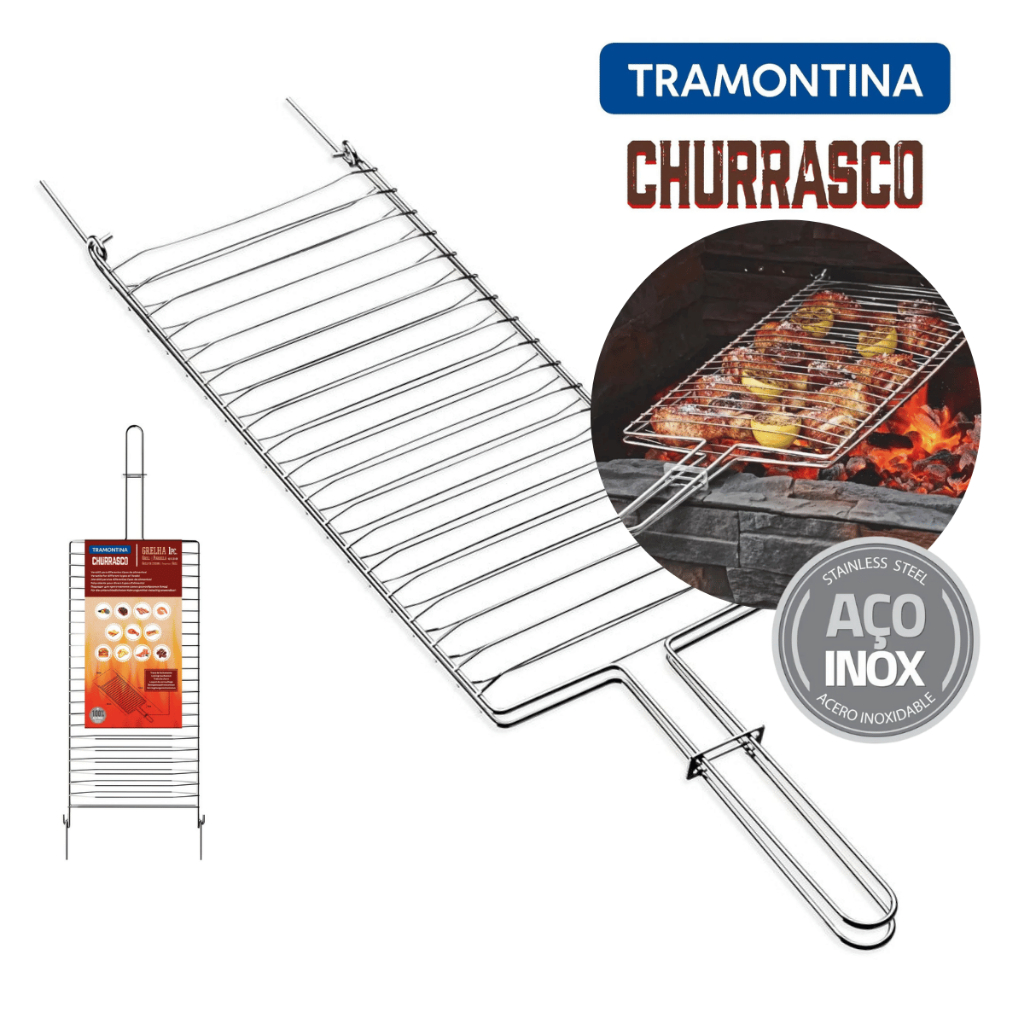 Apresentamos a Grelha Tramontina Churrasco em Aço Inox, o seu melhor aliado para momentos deliciosos de churrasco! Se você valoriza a praticidade e a qualidade em cada detalhe, não pode deixar de ter essa grelha em sua churrasqueira, ela oferece o espaço perfeito para preparar uma variedade incrível de alimentos, garantindo sempre resultados impecáveis. Fabricada em aço inox de alta durabilidade, a nossa grelha não só proporciona resistência, mas também um design elegante que vai impressionar seus convidados. E para garantir a segurança e facilidade de uso, ela conta com uma prática trava de fechamento, mantendo os alimentos no lugar e facilitando o manuseio. Com a Grelha Tramontina Churrasco, você pode soltar a imaginação na hora de preparar o seu churrasco. Desde cortes suculentos de carne até deliciosos peixes e vegetais grelhados, tudo fica ainda mais saboroso quando preparado com a qualidade e confiabilidade que só a Tramontina oferece. Então, escolha a sua receita favorita, reúna os amigos e familiares e prepare-se para uma experiência gastronômica única na companhia da Grelha Tramontina Churrasco. Adquira já a sua e eleve o nível do🔥 Grelha Tramontina Churrasco em Aço Inox – O Segredo de um Churrasco Perfeito! Apresentamos a Grelha Tramontina Churrasco em Aço Inox, o seu melhor aliado para momentos deliciosos e cheios de sabor! Se você valoriza praticidade, qualidade e desempenho, essa grelha é indispensável na sua churrasqueira. Ela oferece amplo espaço para preparar diversos tipos de alimentos e garante resultados sempre impecáveis. Fabricada em aço inox de alta durabilidade, combina resistência e elegância, impressionando seus convidados e proporcionando longa vida útil ao produto. Para maior segurança e praticidade, conta com trava de fechamento que mantém os alimentos firmes e facilita o manuseio durante o preparo. Com a Grelha Tramontina Churrasco, você pode soltar a criatividade: carnes suculentas, peixes saborosos, vegetais grelhados e muito mais — tudo com o padrão de qualidade que só a Tramontina oferece. 👉 Reúna a família e os amigos, escolha a receita do dia e prepare-se para elevar o nível do seu churrasco a outro patamar! 🧽 Dicas de Uso e Cuidados Utilize proteção nas mãos ao manusear utensílios quentes. Mantenha fora do alcance de crianças. Antes do uso: retire as ponteiras de proteção e lave com esponja macia e detergente neutro. Durante o uso: evite sobrecarregar a grelha para não causar deformações. Verifique o fechamento antes de colocar os alimentos. Nunca vire a grelha aberta. Retire os alimentos com utensílios adequados. Após o uso: limpe imediatamente com esponja e detergente neutro. Se houver resíduos aderidos, utilize escovas de cerdas de aço Tramontina para facilitar a limpeza. Seque bem após a lavagem para evitar manchas. Descarte produto e embalagem conforme as normas de reciclagem vigentes. ⚙️ Material Aço Inox 🛡️ Garantia 90 dias contra defeitos de fabricação.seu churrasco para outro patamar! Algumas dicas para cuidar da sua grelha: Ao utilizar utensílios quentes, tenha cuidado redobrado. Se necessário, utilize proteção para as mãos e mantenha-os fora do alcance das crianças. Antes de usar: Remova as ponteiras de proteção e lave a grelha usando apenas esponja e detergente ou sabão neutro. Durante o uso: Não sobrecarregue a grelha, pois isso pode provocar deformações no produto. Antes de colocar o alimento para assar, verifique o fechamento. Tenha cuidado para não virar a grelha quando ela estiver aberta. Retire o alimento com o auxílio de um utensilio. Limpeza: É importante que a limpeza seja realizada imediatamente após o uso e que não permaneçam resíduos de alimentos na grelha. Sempre lave usando esponja e detergente ou sabão neutro. Caso o alimento esteja aderido, recomendamos o uso de escovas com cerdas de aço Tramontina que irão facilitar a limpeza. Seque a grelha imediatamente após a lavagem para evitar o aparecimento de manchas. Para descarte do produto e embalagem siga as orientações de reciclagem vigentes. MATERIAL Aço Inox GARANTIA 90 dias contra defeitos de fabricação.
