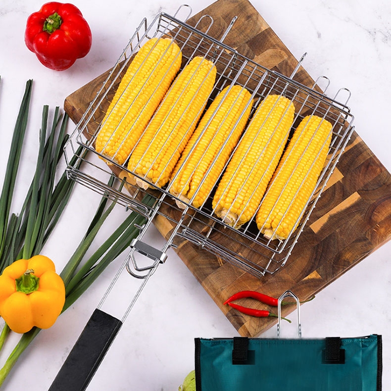 Grelha Dupla para Churrasco Antiaderente Aço Inox Dobravel Churrasqueira Peixe Não Gruda Resistente
