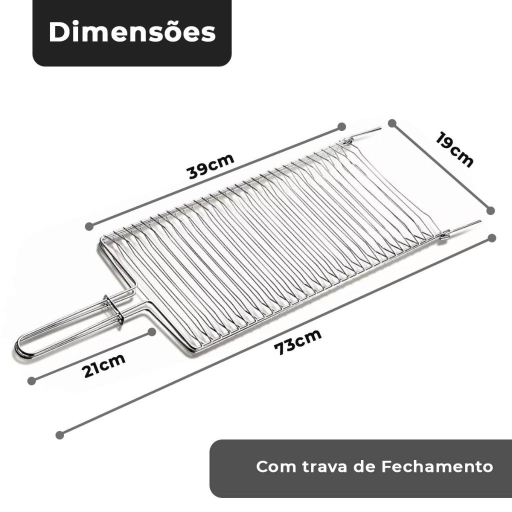 Grelha Para Churrasqueira Dupla Churrasco Peixe Carne Frango Linguiça Multiuso Aço