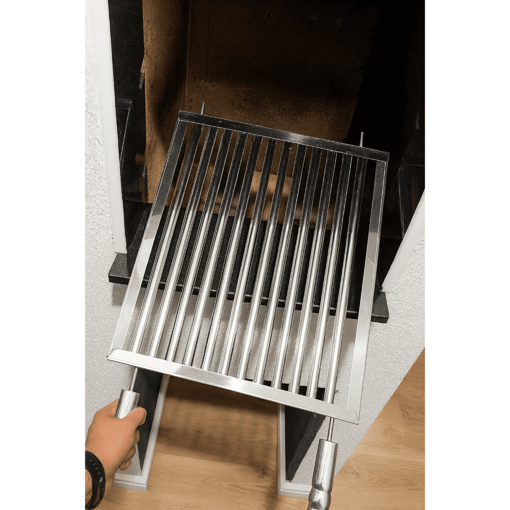 A Grelha Uruguaia é o padrão perfeito para quem busca precisão no assado. Graças ao seu design, ela oferece a menor área de contato com a carne, permitindo que o calor circule e asse a peça por inteiro, preservando o suco e a maciez. ⚠️ IMPORTANTE: Produto com medidas padrão. NÃO fabricamos sob medida. - Meça o vão interno da sua churrasqueira com uma trena. - Selecione o tamanho desejado nas variações do anúncio. Material: 100% Inox (não enferruja, fácil higienização). Manoplas: Madeira com acabamento em alumínio (estética premium e isolamento térmico).