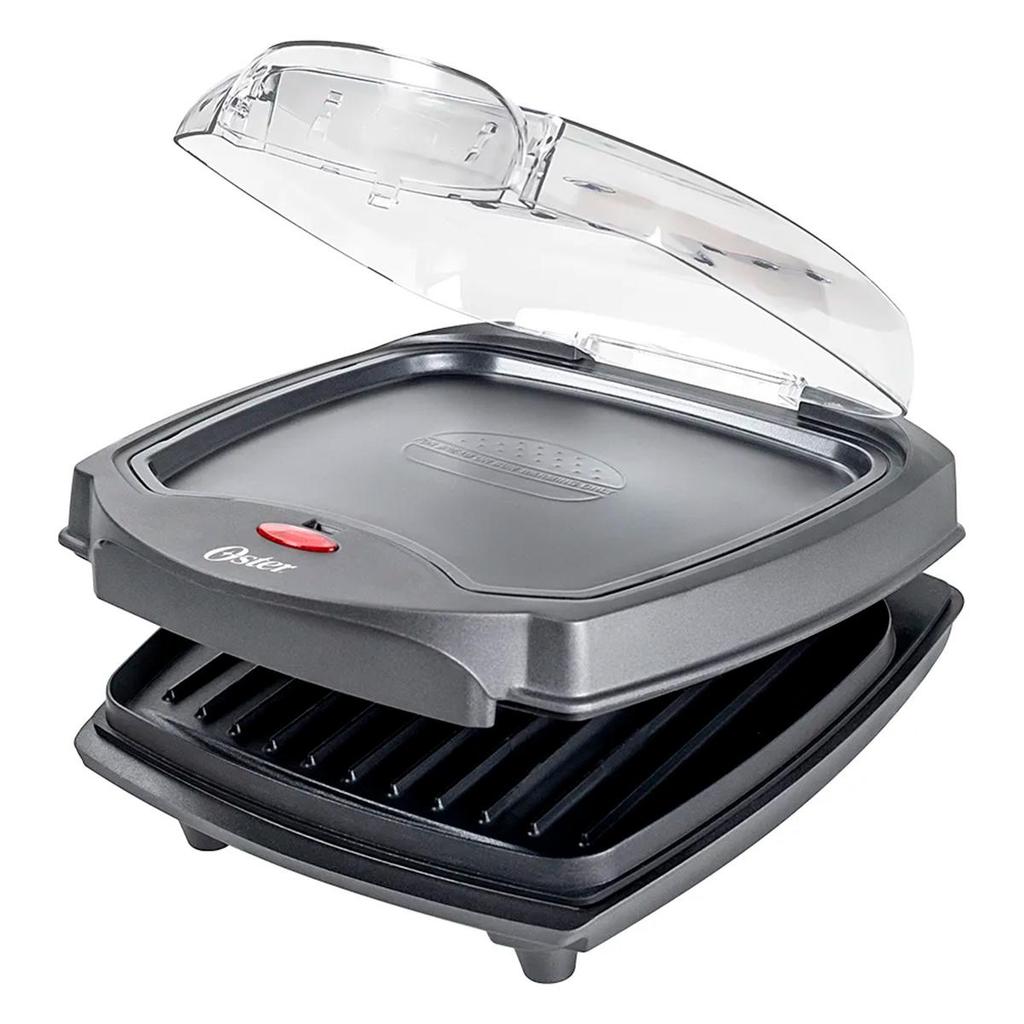 Grill Elétrico com Estufa para Pães 2 em 1 OGRL500 – Oster O Grill Elétrico Burguer 2 em 1 OGRL500 Oster foi desenvolvido para quem busca praticidade e versatilidade no preparo de refeições completas em casa. Ideal para hambúrgueres, carnes, sanduíches e grelhados em geral, ele combina funcionalidade e design inteligente, tornando o preparo mais rápido e organizado. Compacto e moderno, é perfeito para o dia a dia e para momentos de lazer com a família. O grande diferencial está na função 2 em 1 com grelha, chapa e estufa integrada para pães e queijos, permitindo preparar todos os itens do lanche ao mesmo tempo. Enquanto os alimentos são grelhados, os pães e queijos permanecem aquecidos na estufa superior, garantindo um hambúrguer completo, quente e saboroso, sem a necessidade de utilizar outros aparelhos. As placas com revestimento antiaderente evitam que os alimentos grudem, proporcionando preparo uniforme e mais saudável. O design inclinado direciona o excesso de gordura para a bandeja coletora, reduzindo a sujeira e facilitando a limpeza após o uso. Essa combinação garante praticidade, menos desperdício e mais conforto no uso diário. Com capacidade para até 4 hambúrgueres simultaneamente, o Grill Burguer 2 em 1 Oster atende bem toda a família. Seu formato compacto com porta-fio facilita o armazenamento e se adapta facilmente a cozinhas com pouco espaço, oferecendo eficiência sem comprometer a organização do ambiente. Especificações Marca: Oster Modelo: OGRL500 Tipo: Grill elétrico com estufa para pães Função: 2 em 1 (grelha, chapa e estufa) Revestimento das placas: Antiaderente Capacidade: Até 4 hambúrgueres Bandeja coletora de gordura: Sim Design inclinado: Sim Porta-fio: Sim Medidas (L x A x P): 23,5 x 14 x 27,5 cm