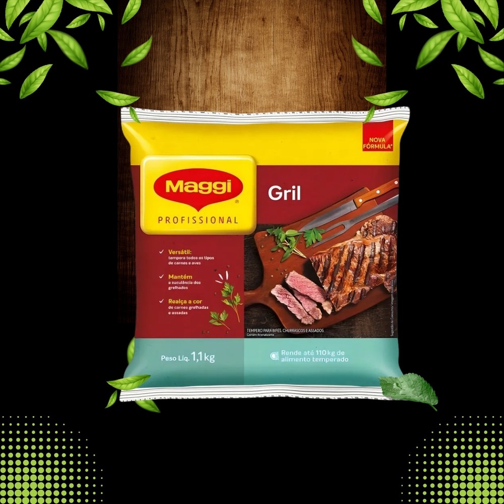 Tempero Maggi Gril – Sabor Intenso para Suas Carnes!_x000d_ _x000d_ _x000d_ _x000d_ Transforme suas receitas com o Tempero Maggi Gril, o segredo dos churrascos suculentos e cheios de sabor! Ideal para carnes grelhadas, assadas ou na churrasqueira, esse tempero pronto é perfeito para quem busca praticidade e sabor marcante em um só produto._x000d_ _x000d_ _x000d_ _x000d_ Principais Benefícios:_x000d_ _x000d_ •Realça o sabor das carnes com um toque levemente defumado e picante_x000d_ _x000d_ •Pronto para uso: Economize tempo sem abrir mão do sabor_x000d_ _x000d_ •Versátil: Ideal para carnes bovinas, suínas, aves e até vegetais grelhados_x000d_ _x000d_ •Rende muito: Um pouco já é o suficiente para temperar com excelência_x000d_ _x000d_ •Ideal para marinadas e preparos rápidos_x000d_ _x000d_ _x000d_ _x000d_ Sugestões de uso:_x000d_ _x000d_ •Picanha, costela, frango, linguiça, espetinhos e hambúrgueres_x000d_ _x000d_ •Marinadas para carnes assadas ou grelhadas_x000d_ _x000d_ •Como base para molhos ou toque final de sabor