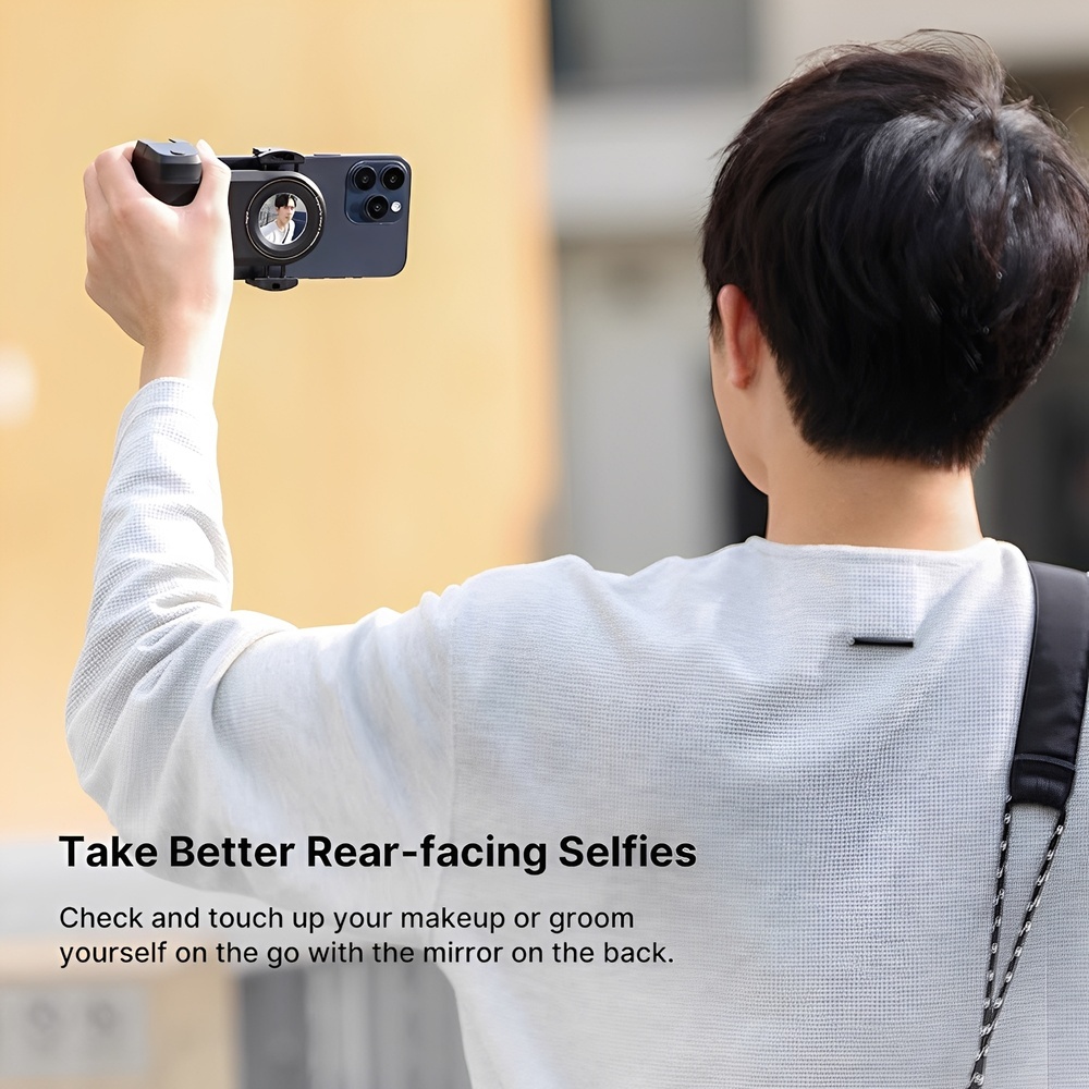 Grip/Suporte Magnético Ulanzi MA35 Câmera Celular, com Controle Remoto Bluetooth, Compatível com iOS e Android, Ideal para Vloggers e Cineastas 1. Compatibilidade Ampla com iOS e Android: O Suporte Ulanzi MA35 é compatível com a maioria dos smartphones, permitindo uma instalação rápida e segura através de montagem magnética ou com o grampo de telefone (46–100 mm), oferecendo flexibilidade para diferentes dispositivos. 2. Controle Remoto Bluetooth para Conveniência Total: O controle remoto Bluetooth permite tirar fotos e gravar vídeos sem fio, com alcance de até 15 metros, proporcionando liberdade e praticidade durante gravações e sessões de fotos. 3. Ajustes Rápidos com Modos Vertical e Horizontal: A alça giratória (±90°) facilita a troca entre modos vertical e horizontal, permitindo ajustar o enquadramento de forma simples e rápida, ideal para vlogs e filmagens dinâmicas. 4. Montagens Adicionais para Acessórios: O Ulanzi MA35 inclui uma sapata fria, rosca de 1/4 e anel ferromagnético na frente, possibilitando a adição de acessórios como microfones e luzes LED, além de permitir fixação em tripés para maior versatilidade.