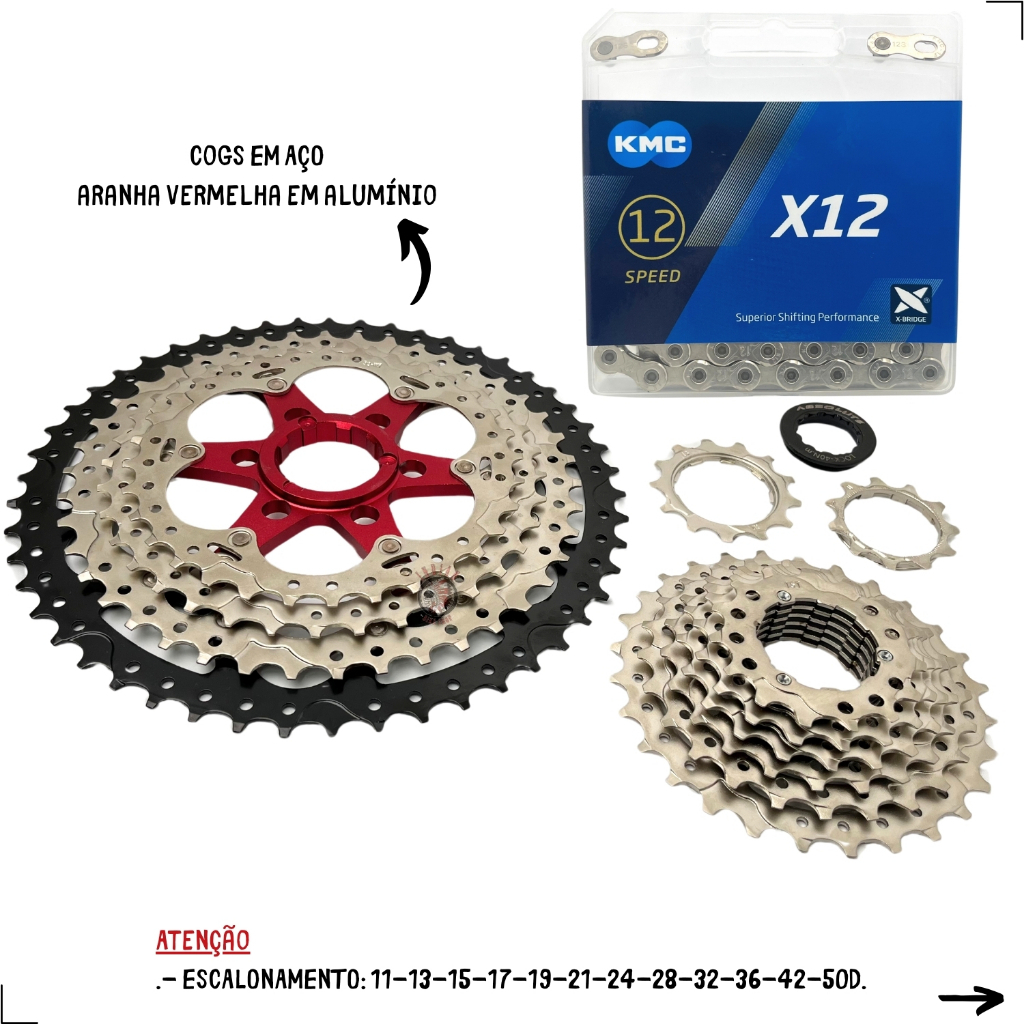 GRUPO RELAÇÃO ABSOLUTE WILD 2 1X12V 12V K7 11/50 + PEDIVELA PRIME INTEGRADO 34D + CORRENTE KMC PRATA