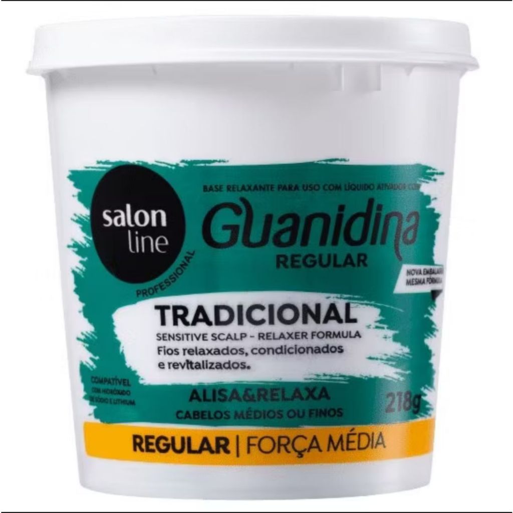 Salon Line Guanidina- Alisa, relaxa e reduz o volume dos cabelos, deixando-os mais lisos e soltos. Sua fórmula proporciona um resultado rápido e eficiente, além de conter Lanolina, que promove emoliência, hidratação e umectação aos fios. Sua fórmula proporciona um resultado rápido e eficiente. A Guanidina é compatível com Hidróxido de Sódio e Lithium, e incompatível com Tioglicolato de Amônia.