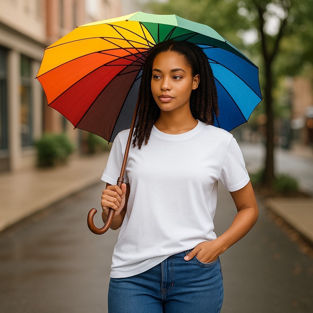 Altura: 70cm Largura: 1,20m Para você se proteger do sol ou da chuva o guarda chuvas colorido além de proteção ele tem estilo.