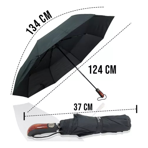 GUARDA CHUVA AUTOMÁTICO ABRE/FECHA UNISSEX RESISTENTE REFORÇADO COMPACTO l 1 Guarda-chuva AUTOMÁTICO ABRE/FECHA e UNISSEX. RESISTENTE l Reforçado CONTRA O VENTO l Secagem Rápida l COMPACTO l Praticidade no dia a diaIdeal para você, que preza por qualidade e praticidade para o seu dia-a-dia! • ARMAÇÃO:A armação deste modelo é preparada para aguentar VENTOS FORTES, sem quebrar com facilidade. Ele possui o varão principal e suas 8 HASTES feitas totalmente em METAL com FIBRA DE VIDRO nas varetas e nas ponteiras. Além disso, ele é confeccionado em tecido Poliéster e apresenta secagem rápida, o que evita manchas e pontos de mofo no tecido.• GRANDE QUANDO ABERTO, PEQUENO QUANDO FECHADO.Quando aberto, se torna grande medindo (124cm de diâmetro), sua GRANDE AMPLITUDE proporciona uma extrema proteção para você e seus pertences, e ainda pode levar um acompanhante sem ficar apertado. Fechado, se torna compacto, pois mede apenas 37cm, perfeito para: LEVAR NA BOLSA/MOCHILA • SISTEMA DUPLO AUTOMÁTICOEle possui um sistema de acionamento de DUPLO AUTOMÁTICO, com UM CLIQUE no botão ELE ABRE, e com outro ELE FECHA evitando o trabalho de abrir manualmente em locais de rápida ação e se molhar todo, trazendo mais praticidade para o seu dia-a-dia. • DESIGN:E não podemos deixar de falar de como ele é bonito, além de ser um modelo na cor preta, que combina com todos os estilos, ele possui um detalhe amadeirado em sua manopla que dá um charme a mais ao seu guarda-chuva. Além disto, nele vem acoplado um apoio de pulso, assim você pode ter mais segurança ao levá-lo.· PRODUTO TESTADO E BEM EMBALADO ANTES DO ENVIO.Quantidade: 1 unidadeGênero: UnissexAcionamento: automático duplo com 1 clique abre e com outro clique fecha.Diâmetro aberto: 124cm Comprimento fechado: 37 cm.Composição: Poliéster, aço, fibra de vidro, borracha.Peso do guarda-chuva: 550gr.