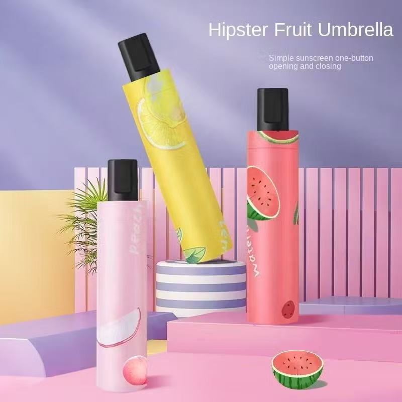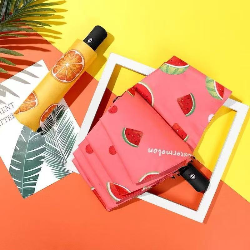 Guarda-Chuva Automático Dobrável Estampa Frutas com Proteção UV Leve e Compacto para Sol e Chuva