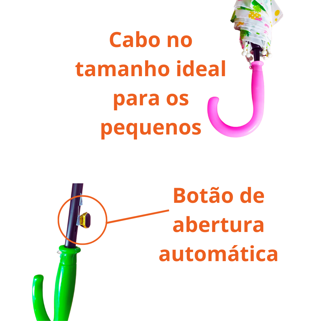 Guarda Chuva Infantil com Proteção Copo Anti Goteira Copinho Não Molha Bolsa Menino Menina Resistente Criança Automático