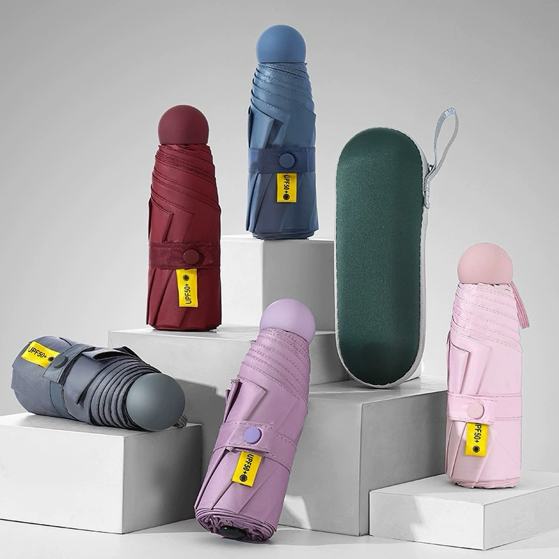 Guarda-chuva mini sombrinha proteção solar UV + de cápsula com estojo