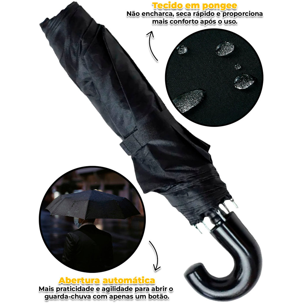 Guarda Chuva Pequeno Cabo Curto Preto Elite Imports O Guarda-Chuva Pequeno com Cabo Curto Preto da Elite Imports é a solução ideal para quem busca praticidade no dia a dia. Com design compacto e discreto, ele cabe facilmente na bolsa, mochila ou até no porta-luvas do carro. Apesar do tamanho reduzido, oferece excelente proteção contra chuva, com tecido impermeável e estrutura reforçada. O cabo curto garante mais leveza e facilidade no manuseio, ideal para quem está sempre em movimento. Características: >Modelo compacto e retrátil: perfeito para transporte; > Cabo curto e anatômico: leve e fácil de manusear; > Estrutura resistente: varetas em metal para maior durabilidade; > Tecido impermeável de alta qualidade; > Abertura manual suave e segura; > Cor preta discreta e elegante. - Marca: Elite Imports - Garantia: 90 dias contra defeitos de fabricação Vantagens de comprar na Brester: - Produto a pronta entrega. - Produto novo, com garantia de fábrica. - Nota fiscal para Pessoa Física e Pessoa Jurídica.