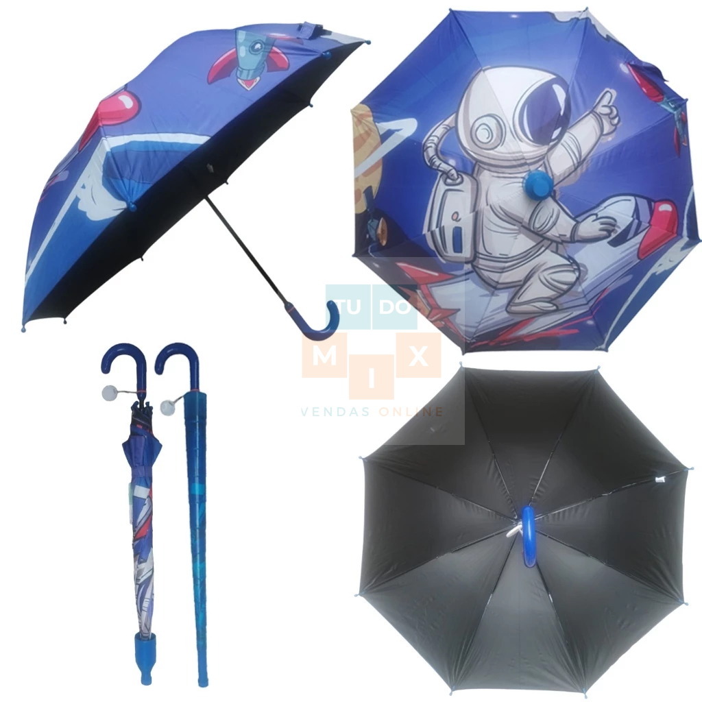 Guarda Chuva Sombrinha Infantil Automático Com Proteção Solar Unicórnio Astronauta Sereia Dinossauro e Princesa