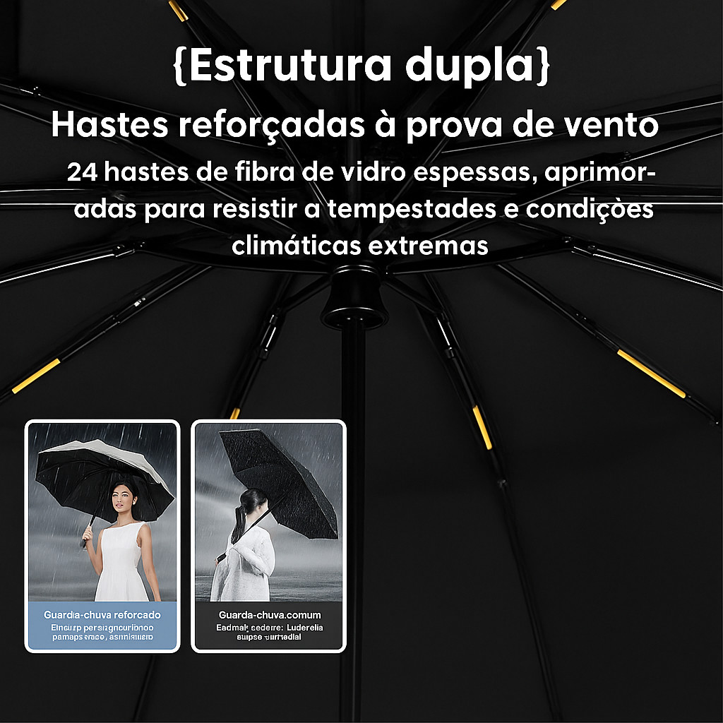 Guarda-Chuvas Automático Reforçado | A Prova De Vento | Sol E Chuva | Dobrável Premium 12 Varetas