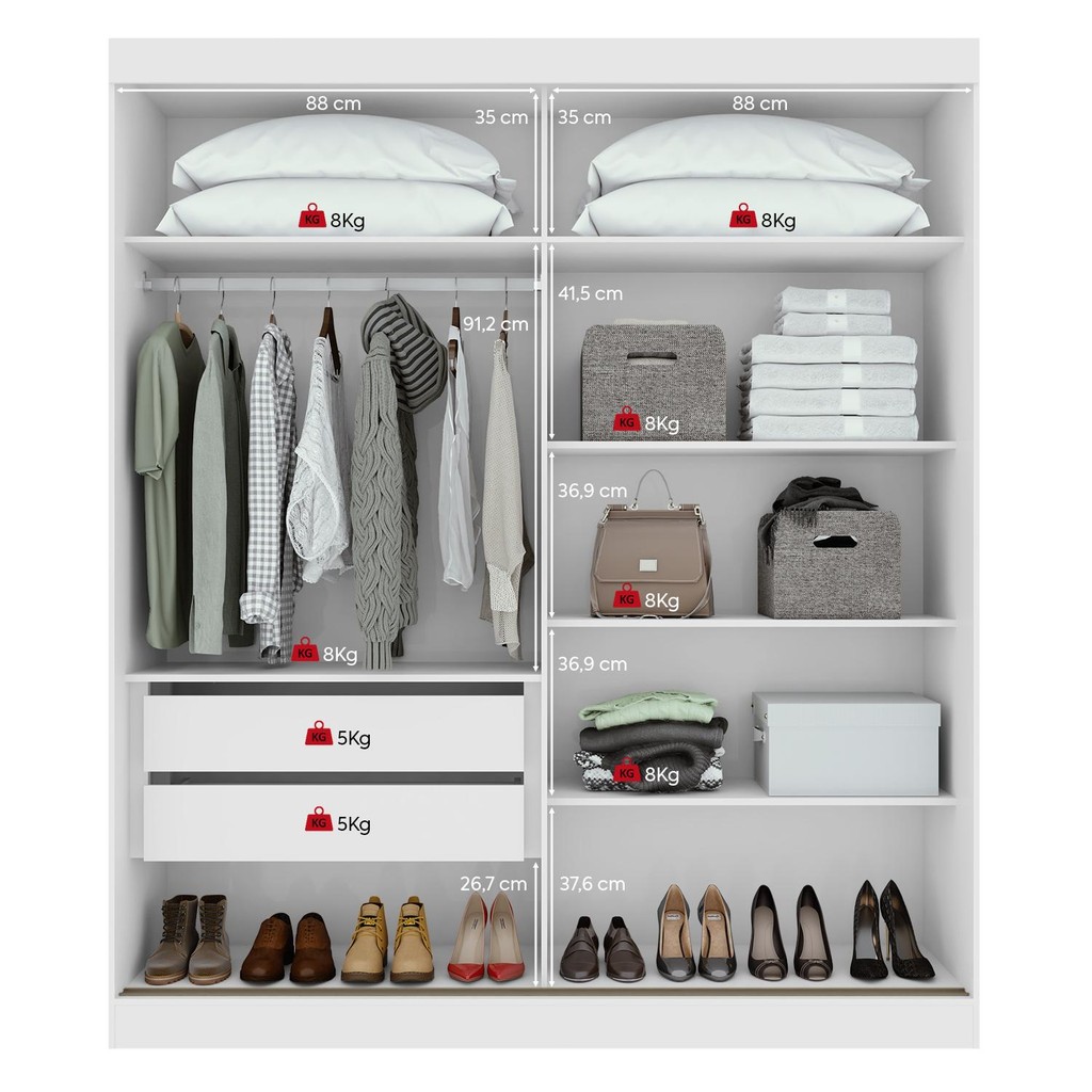 Guarda-Roupa 2 Portas de Correr 2 Gavetas Easy Light com Espelho Branco