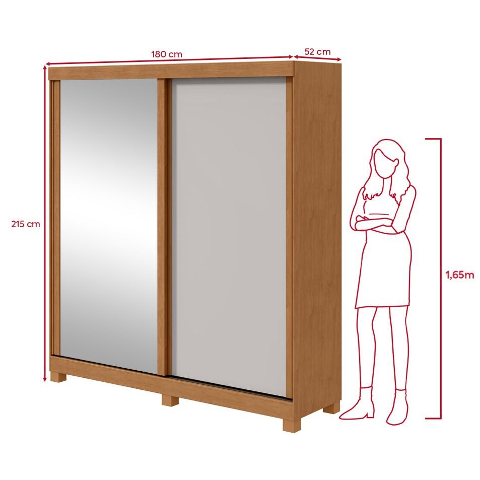 Guarda-Roupa 2 Portas de Correr 2 Gavetas Easy Light com Espelho e Pés Amendoa Clean/off White/Amen