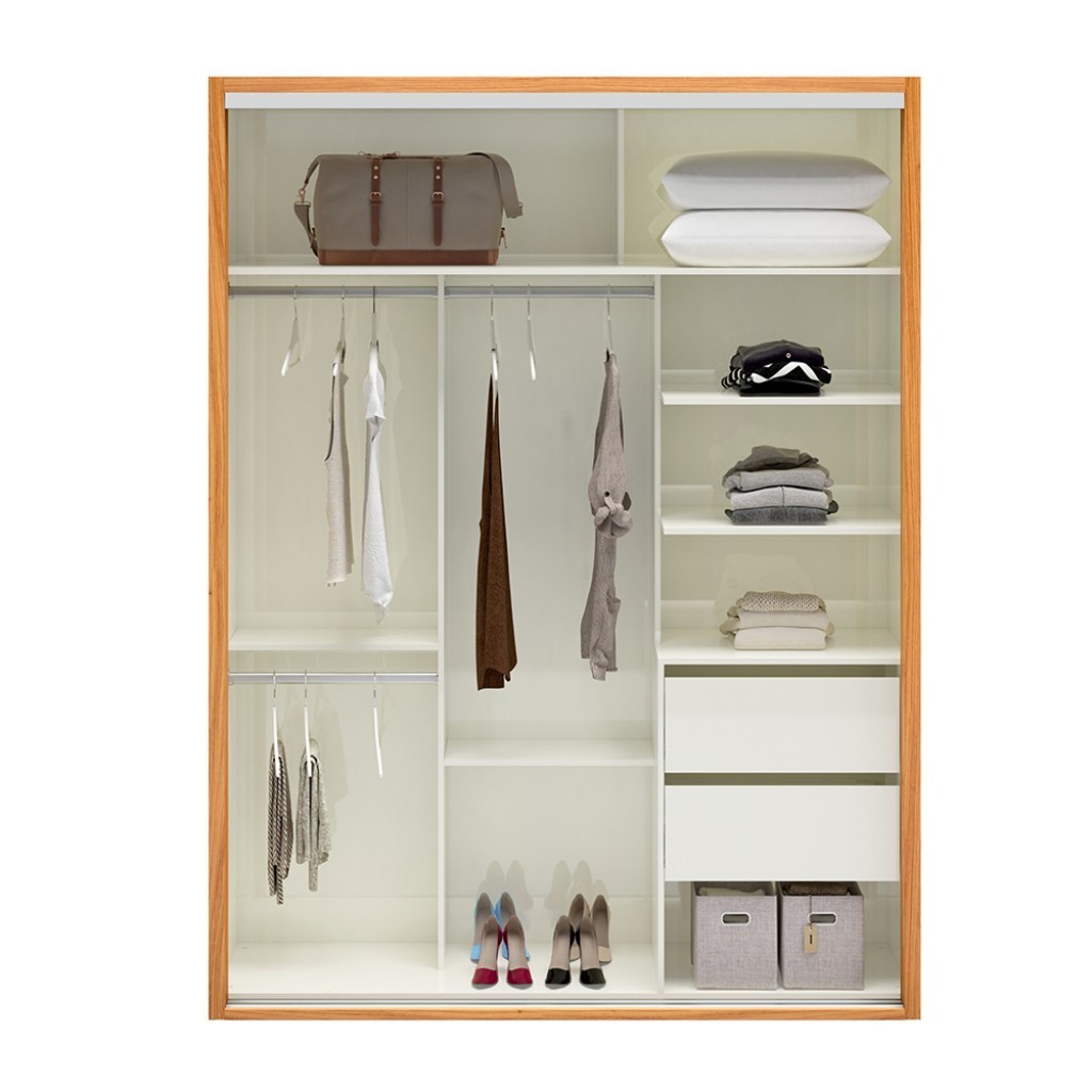Guarda-Roupa 2 Portas de Correr 2 Gavetas Espelhado Ripado
