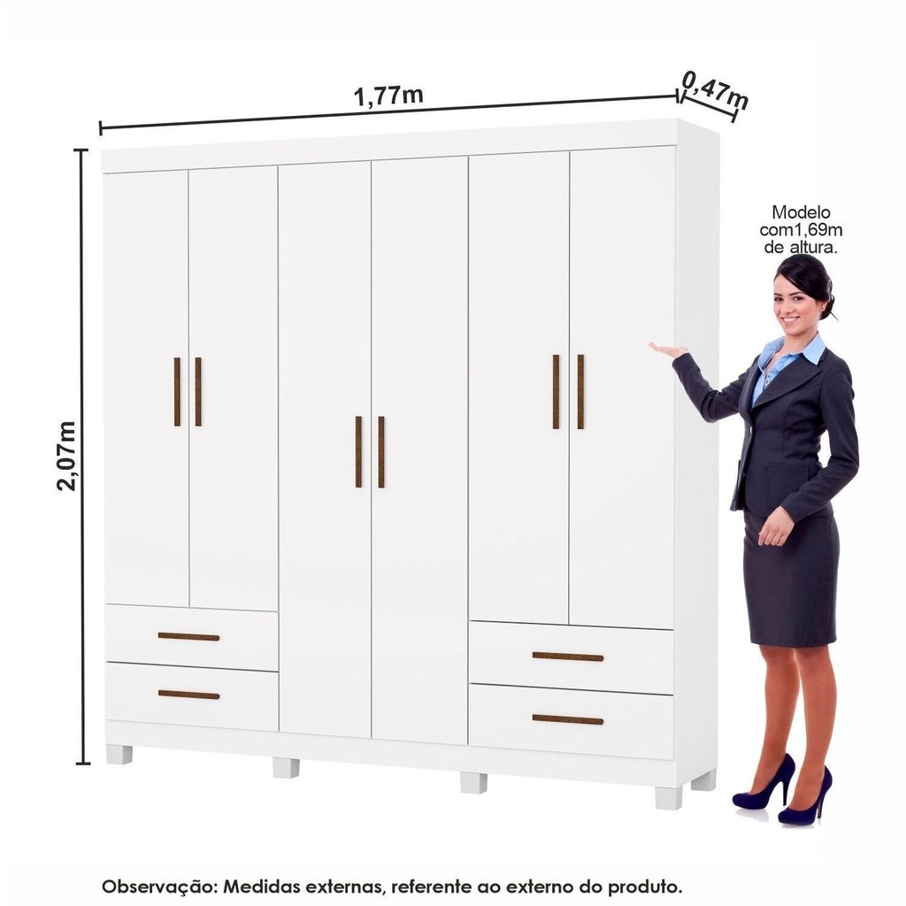 Guarda-roupa 6 Portas 4 Gavetas com Pés Genova Branco