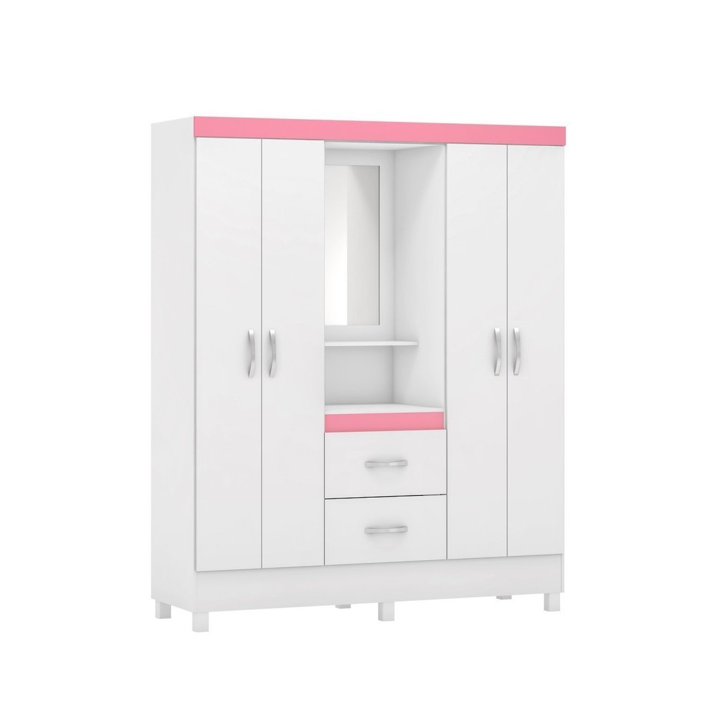 Guarda Roupa Capelinha 4 Portas Lord Móveis Branco/Rosa