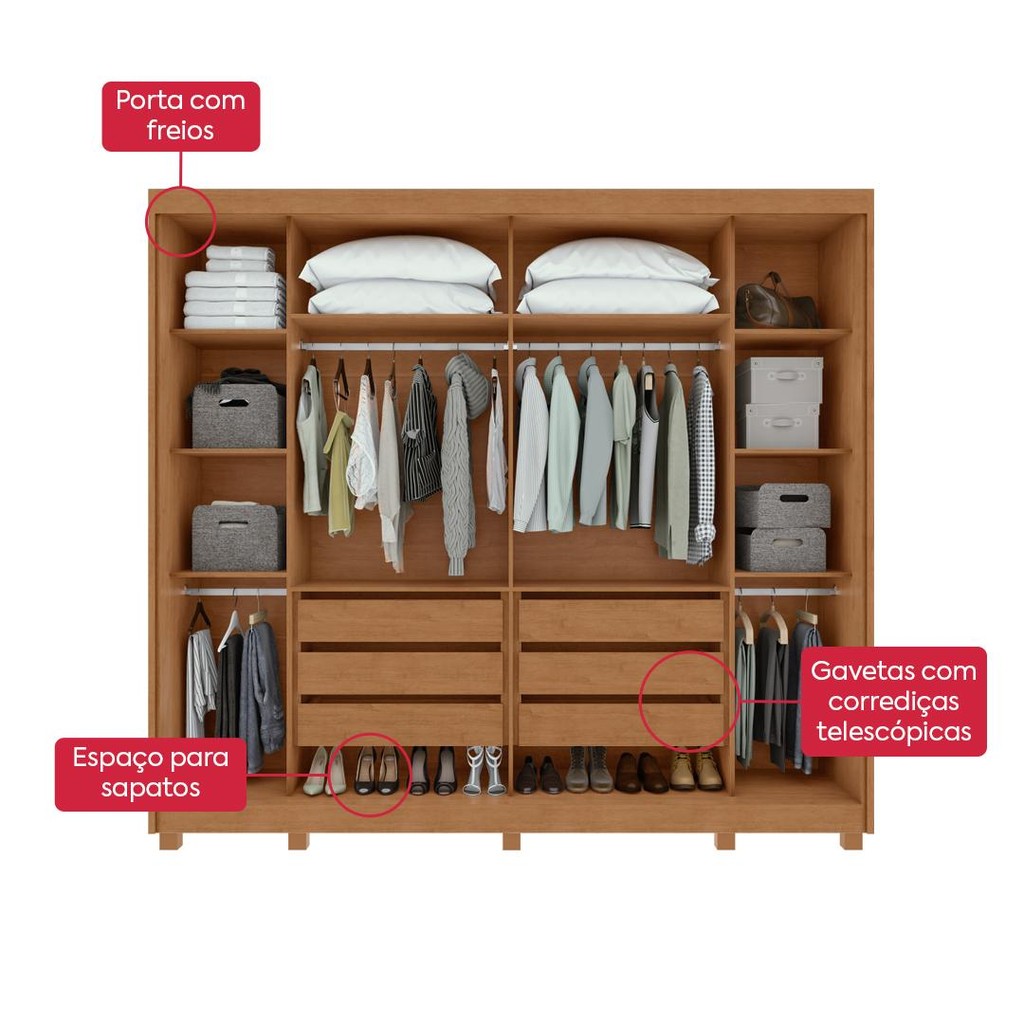 Transforme seu quarto com o sofisticado e funcional Guarda-Roupa Easy Max. Este móvel, projetado com atenção aos detalhes e tecnologia de ponta, oferece não apenas espaço, mas também estilo e praticidade para o seu dia a dia. Características: Material: Produzido em MDF de alta qualidade com chapas de 15mm. Acabamento: Pintura U.V. com acabamento em micro textura, proporcionando um toque aveludado e elegante. Bordas: Laterais reforçadas em MDF de 25mm. Portas: 02 portas deslizantes, cor flex que proporciono você montar o produto na combinação de cor da sua preferência. Puxadores: Perfis em alumínio, modernos e duráveis. Design Interno: Composto por 10 prateleiras, maleiro individual e cabideiros em alumínio, oferecendo organização otimizada. Rodanas: Reguláveis com molas, garantindo deslizamento suave das portas. Gavetas: Equipadas com corrediças telescópicas e distanciadores em MDF, proporcionando maior durabilidade e espaço. Vantagens e Benefícios: Tecnologia de Produção: Fabricado com equipamentos de alta tecnologia, assegurando precisão e qualidade. Controle de Qualidade: Rigorosamente testado e aprovado, garantindo um produto confiável. Montagem Simplificada: Fácil de montar, acompanhado por um manual detalhado. Amplo Espaço Interno: Excelente profundidade que possibilita a organização de roupas, acessórios e sapatos com facilidade. Gavetas Espaciosas: Grandes e espaçosas, com corrediças telescópicas que proporcionam deslizamento suave. Portas Deslizantes: De fácil manuseio, oferecendo praticidade no dia a dia. Calceiro: Inclui um espaço específico para calças, evitando amassados indesejáveis. Design Uniforme: Interior do produto na mesma cor do exterior, garantindo um visual harmonioso. Com o Guarda-Roupa Toronto, você terá um quarto mais organizado, elegante e funcional. Ideal para quem busca praticidade sem abrir mão da estética, este guarda-roupa será o destaque do seu ambiente, mantendo suas roupas e acessórios sempre ao alcance de forma ordenada e sofisticada. Invista na qualidade e no design do Guarda-Roupa Toronto e transforme seu espaço com charme e eficiência!