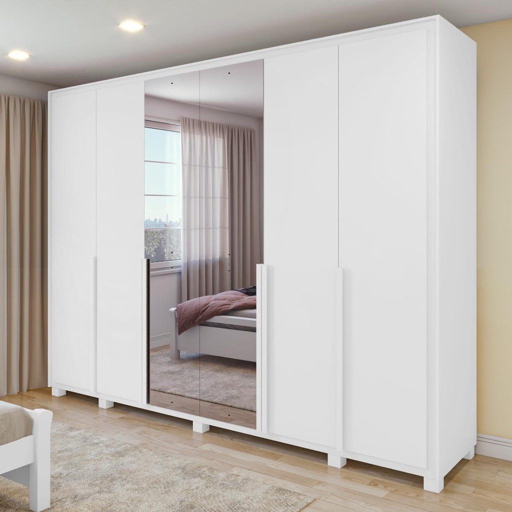Guarda Roupa Casal 100% MDF 6 Portas Easy Space Com Espelho E Pés Branco -Lopas