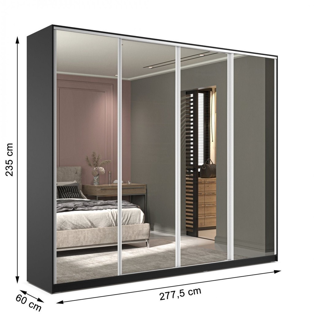 Guarda Roupa Casal 100% MDF BP com 4 Portas Espelhos Zermatt Preto