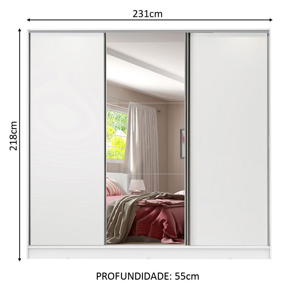Guarda Roupa Casal 100% MDF com Espelho 3 Portas de Correr Royale Madesa