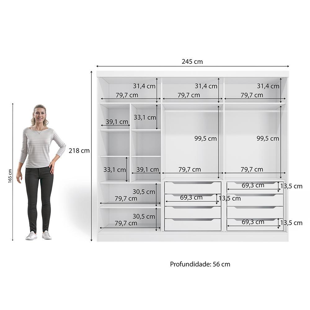 Guarda-Roupa Casal 100% MDF Kappesberg 3 Portas de Correr 8 Gavetas Branco