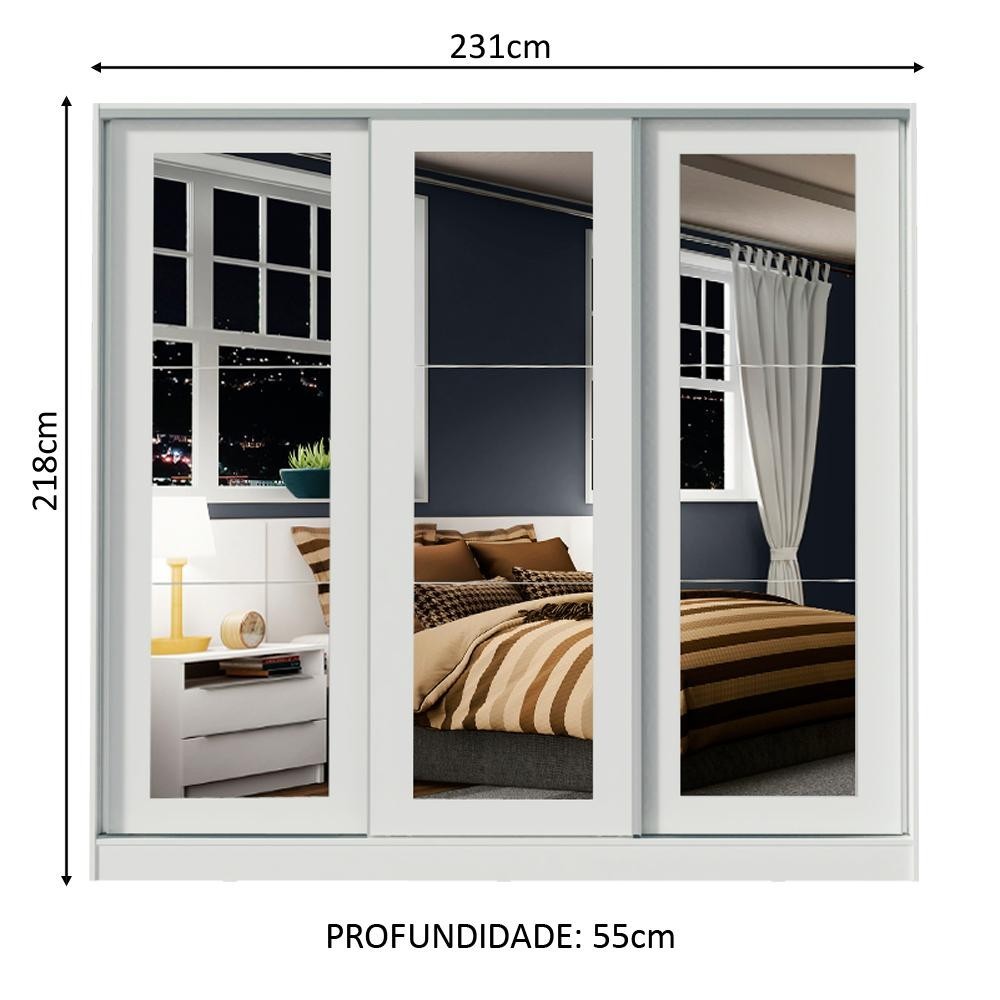 Guarda-Roupa Casal 100% MDF Madesa Eros 3 Portas de Correr de Espelho - Branco