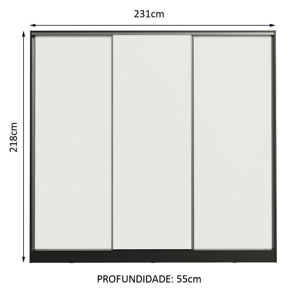 Guarda Roupa Casal 100% MDF Madesa Royale 3 Portas de Correr - Preto/Branco