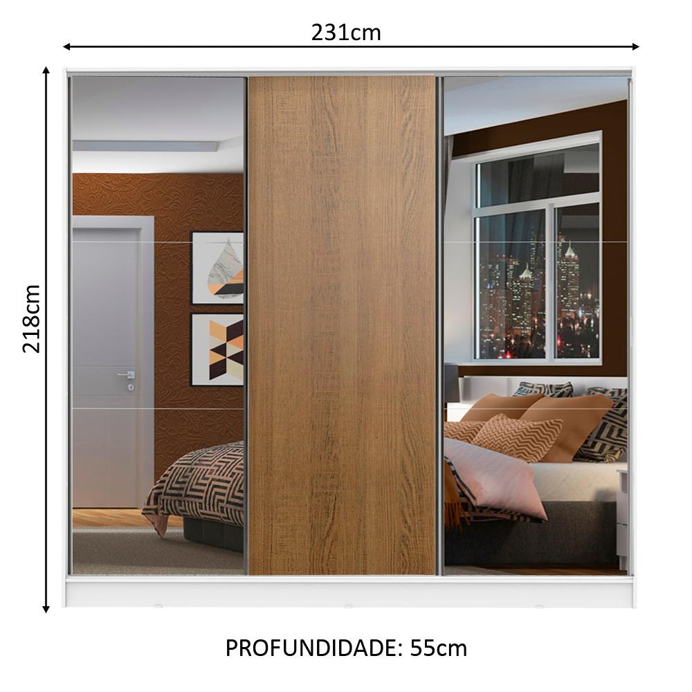 Guarda Roupa Casal 100% MDF Madesa Zurique 3 Portas de Correr com Espelhos - Branco/Rustic