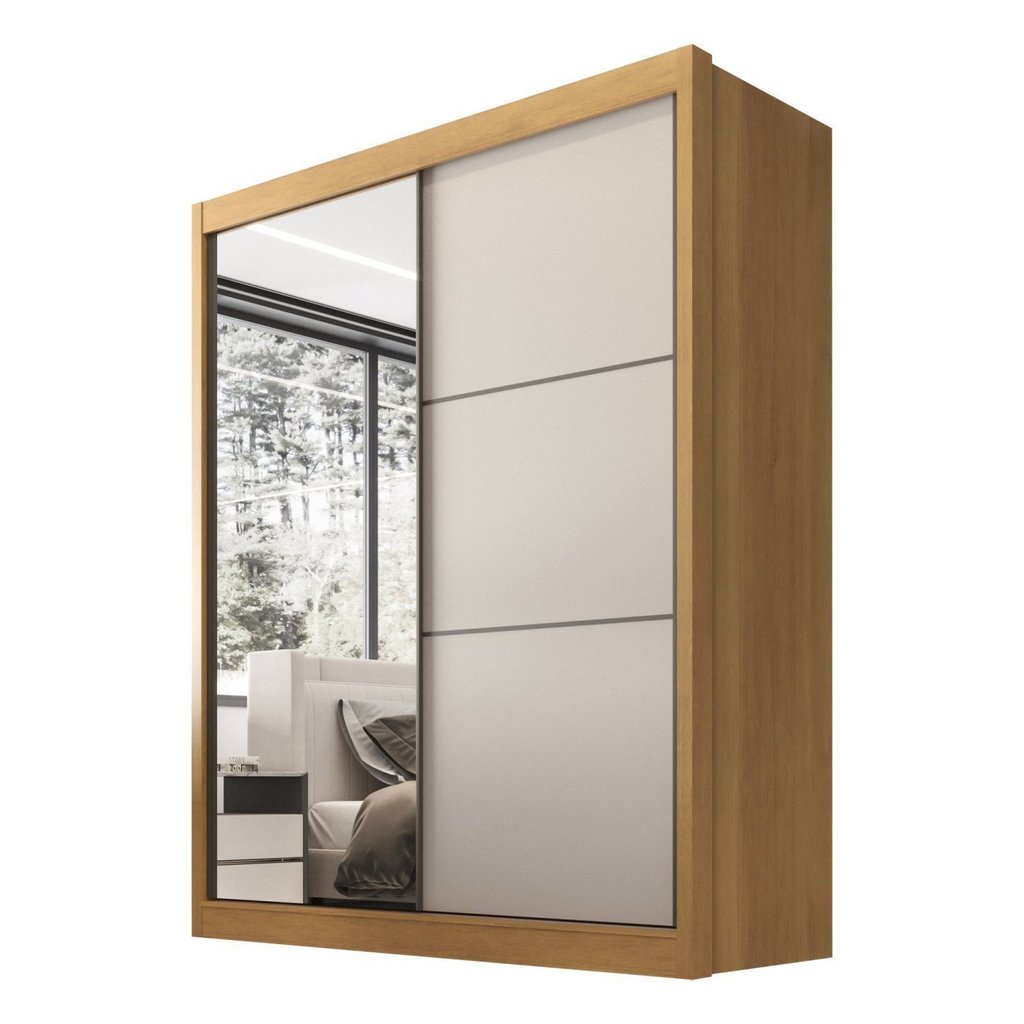 Guarda Roupa Casal 2 Portas 3 Gavetas com Espelho 100% Mdf Grécia Cinamomo/Off White
