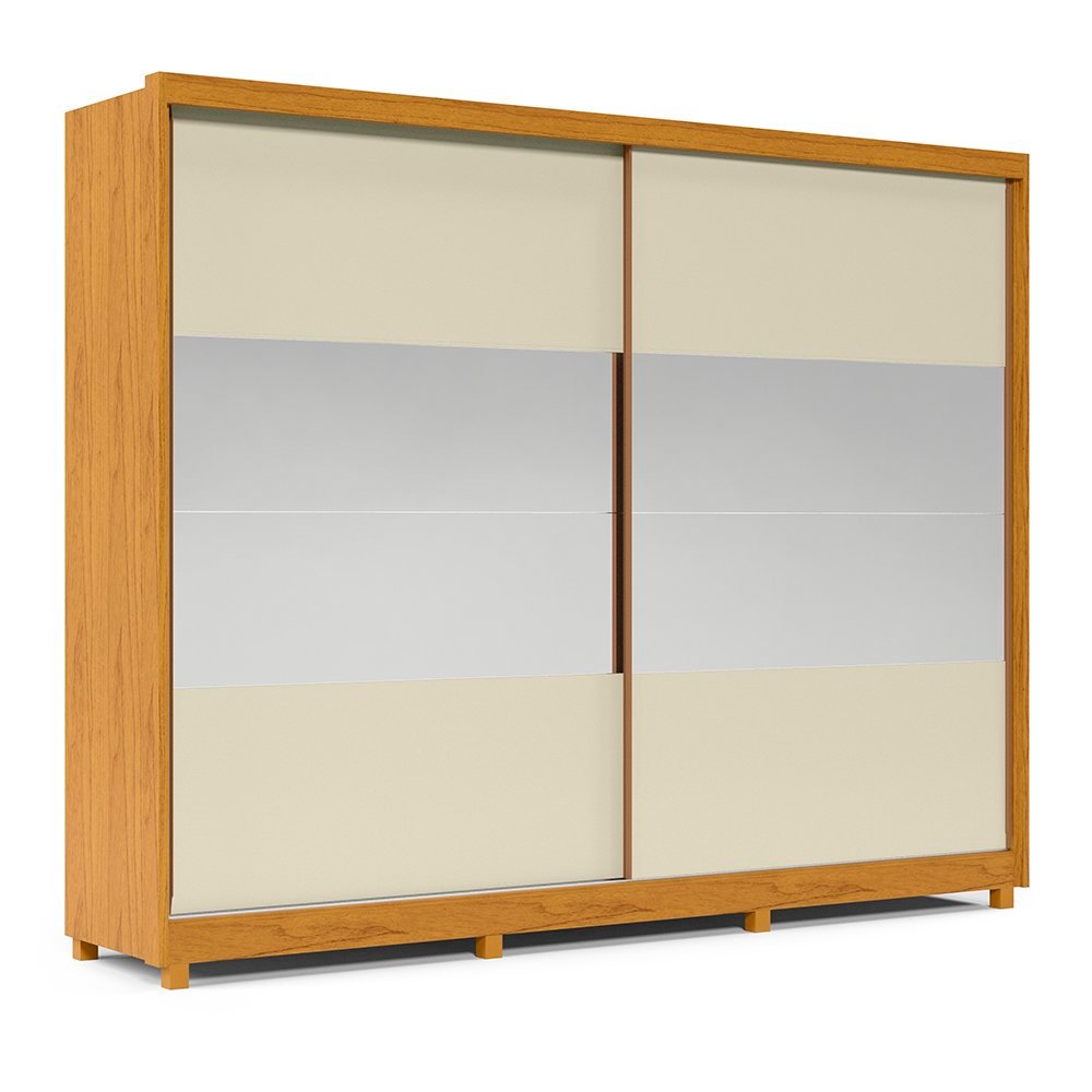 Guarda Roupa Casal 2 Portas de Correr Espelho Apolo 100% MDF Natura/Off White