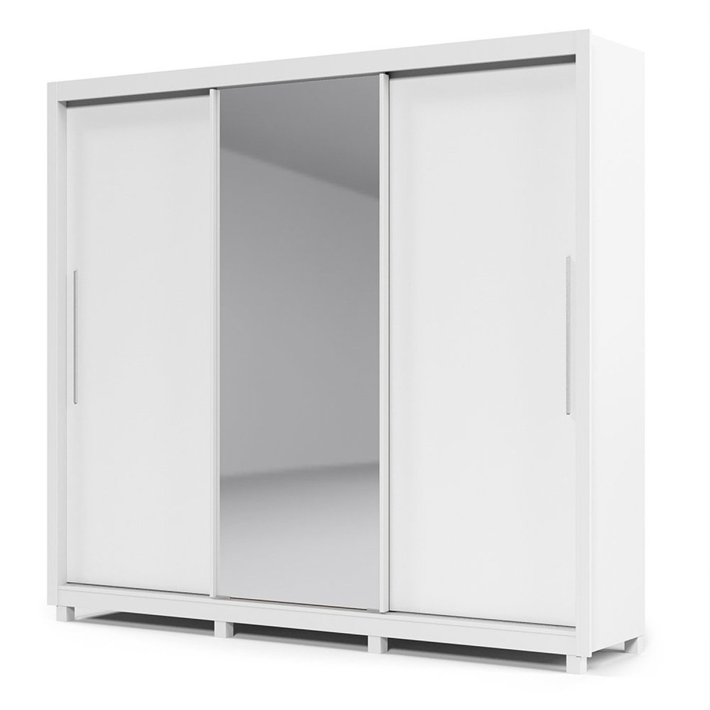 Guarda-roupa Casal 3 Portas 1 Porta Espelhada com Pés Royale 100% MDF Branco Acetinado