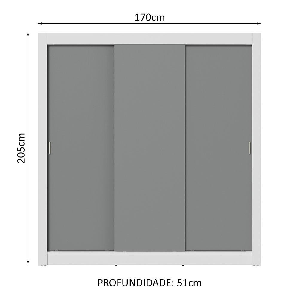 Guarda-Roupa Casal 3 Portas de Correr Branco/Cinza Nobre Madesa