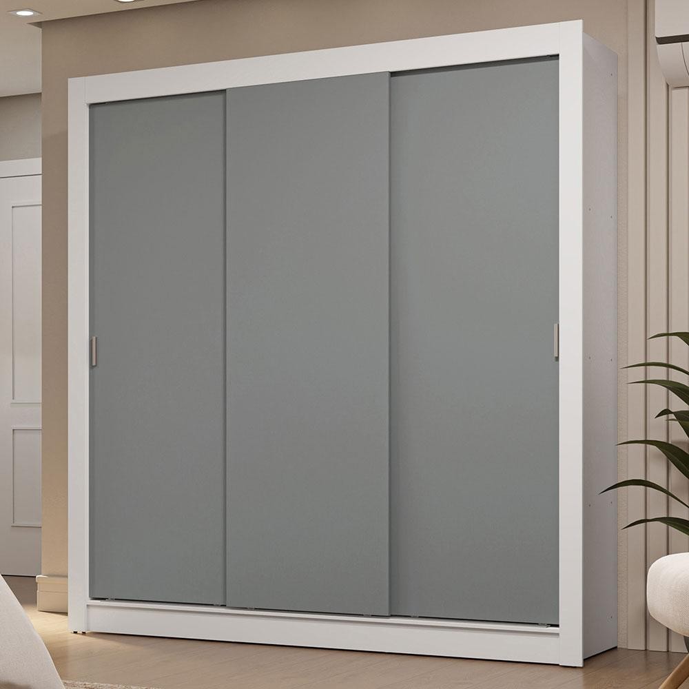 Guarda-Roupa Casal 3 Portas de Correr Branco/Cinza Sublime Madesa
