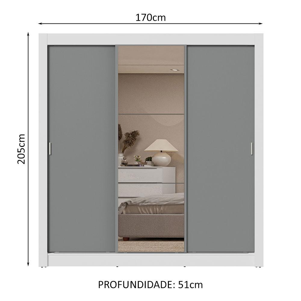 Guarda-Roupa Casal 3 Portas de Correr com Espelho 2 Gavetas Branco/Cinza Sublime Madesa