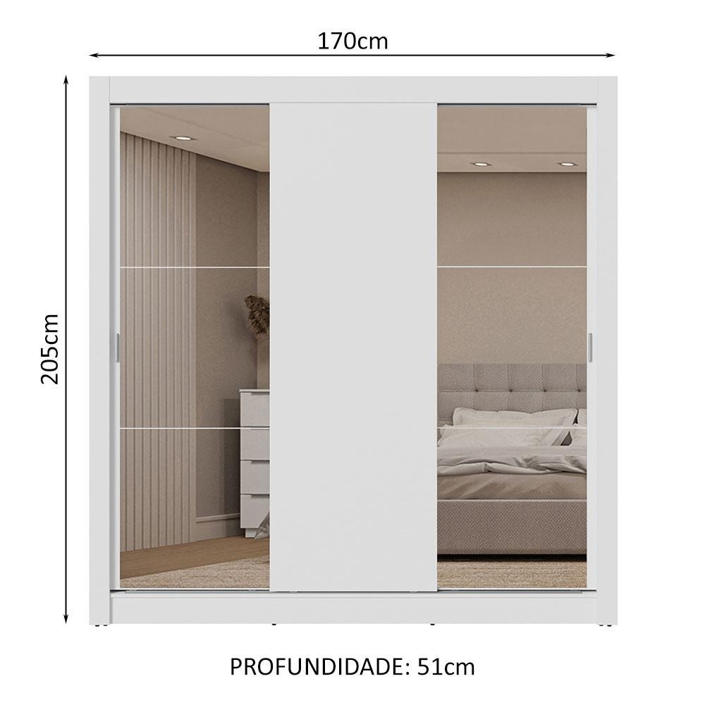 Guarda-Roupa Casal 3 Portas de Correr com Espelhos 2 Gavetas Branco Sublime Madesa