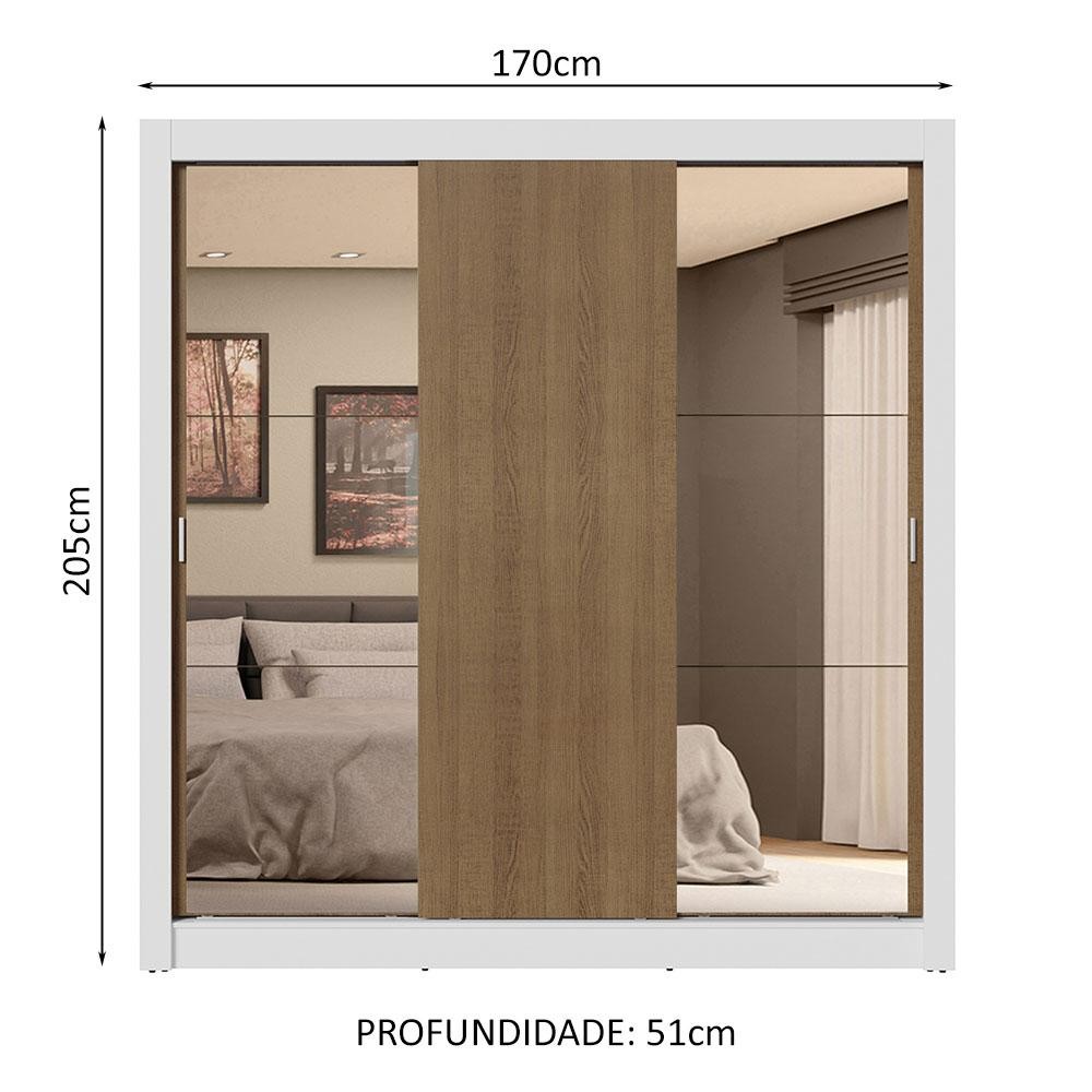 Guarda-Roupa Casal 3 Portas de Correr com Espelhos 4 Gavetas Branco/Rustic Sublime Plus Madesa