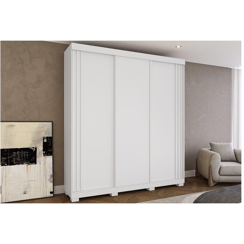 Guarda Roupa Casal 3 Portas de Correr e 4 Gavetas Deise Branco - ACP