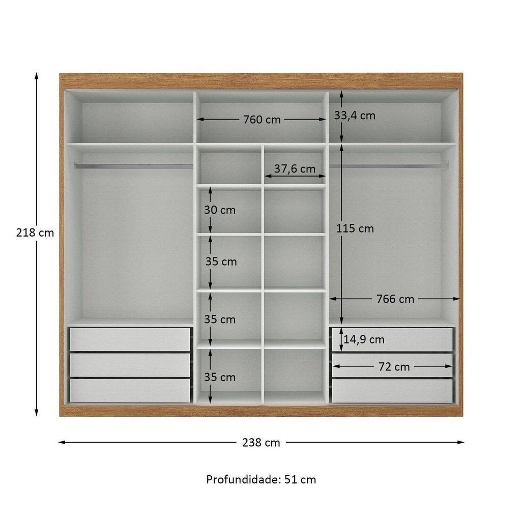 Guarda-roupa Casal 3 Portas de Correr e 6 Gavetas Spazio Cinamomo/Off White