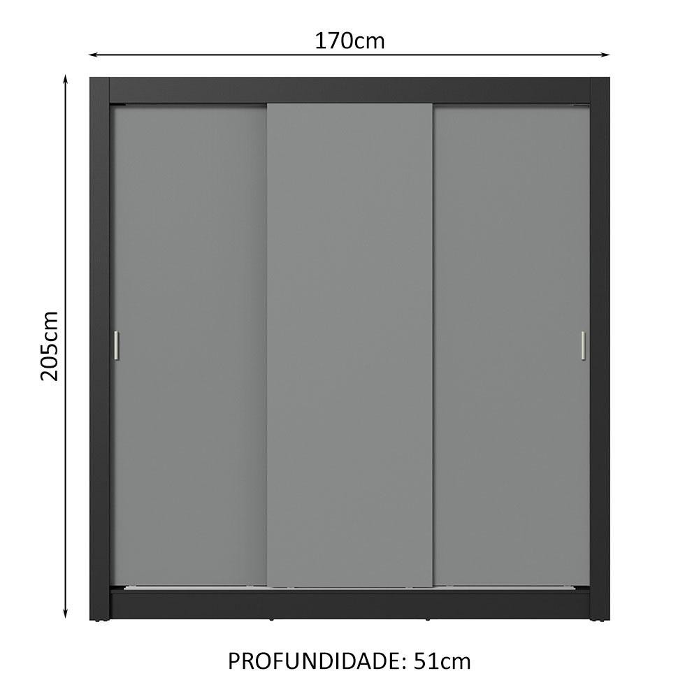 Guarda-Roupa Casal 3 Portas de Correr Preto/Cinza Nobre Madesa