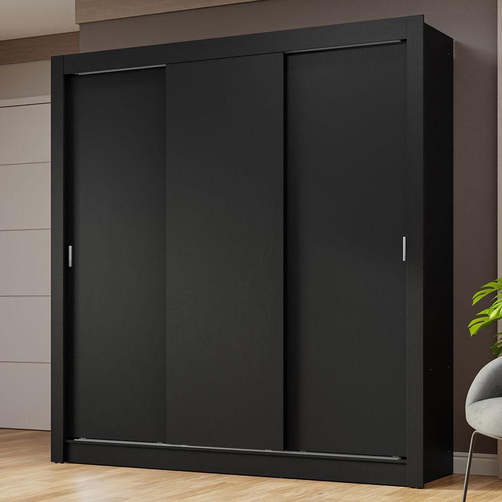 Guarda-Roupa Casal 3 Portas de Correr Preto Nobre Madesa