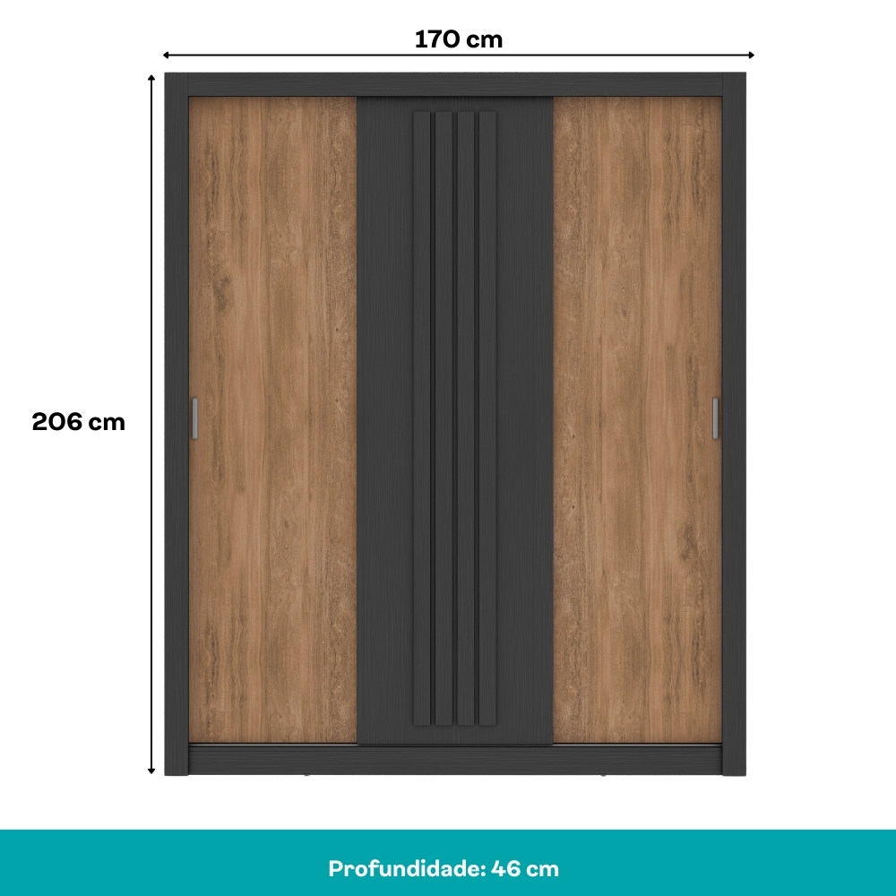 Guarda Roupa Casal 3 Portas Doha Carraro Ripado Preto Touch com Freijó