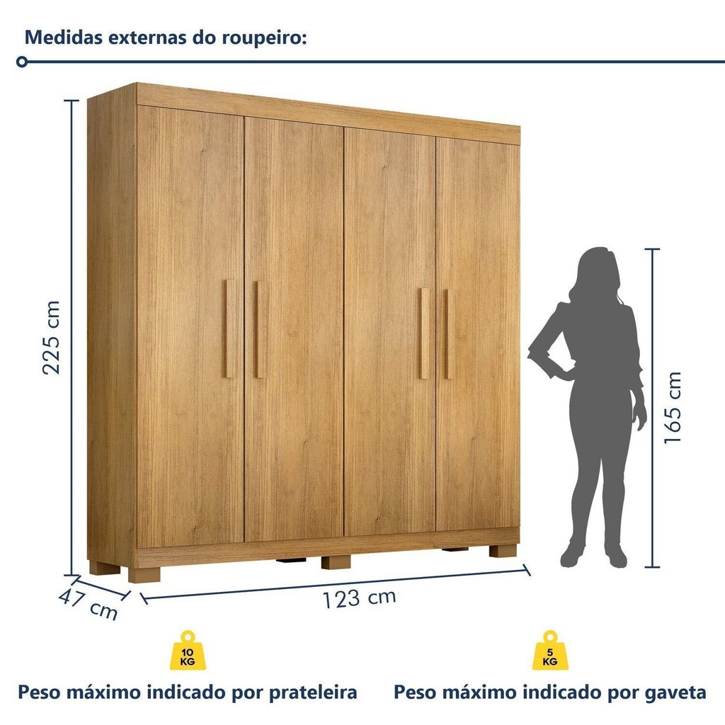 Guarda Roupa Casal 4 Portas 2 Gavetas 100% Mdf Jandaia Cinamomo