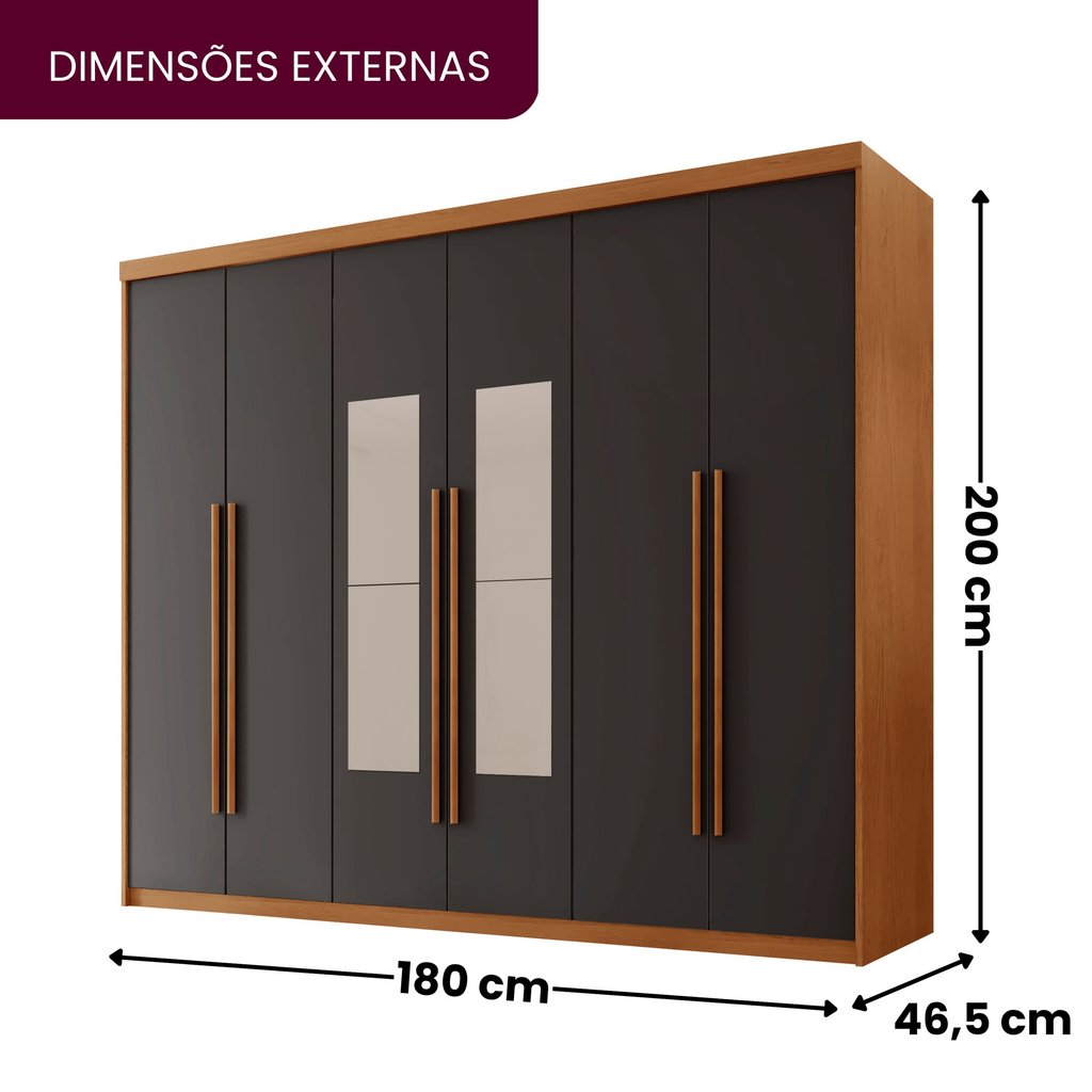Guarda Roupa Casal 6 Portas 2 Gavetas com Espelho MDF Veracruz Naturalle/Grafite
