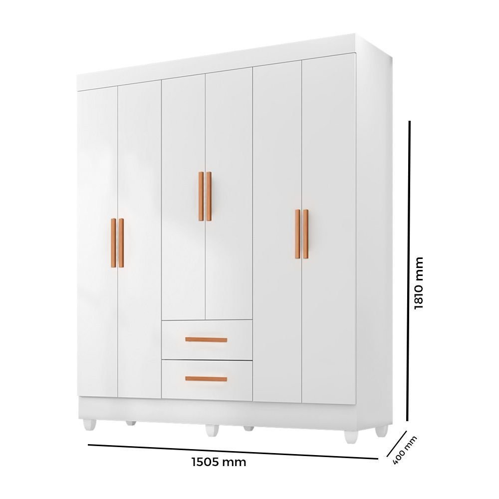 Guarda Roupa Casal 6 Portas 2 Gavetas com Pés Lite Branco Brilho
