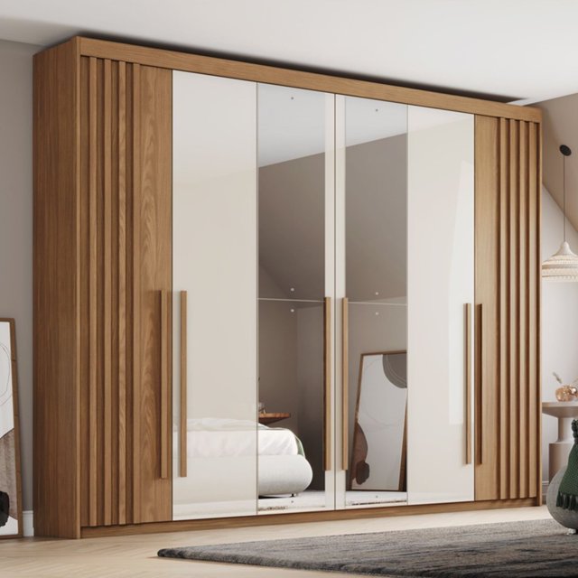 Guarda-roupa Casal 6 Portas 4 Gavetas com Espelho Nathaniel Espresso Móveis Nature/Off White