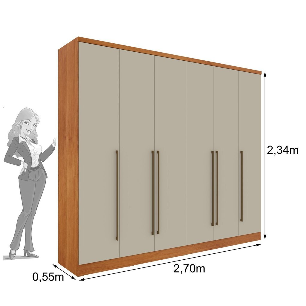Guarda Roupa Casal 6 Portas 8 Gavetas com Espelho Portugal 270cm Espresso Móveis Cinamomo/Off White