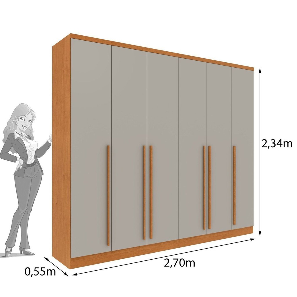 Guarda-Roupa Casal 6 Portas 8 Gavetas Puxador MDF 270cm Portugal Espresso Móveis